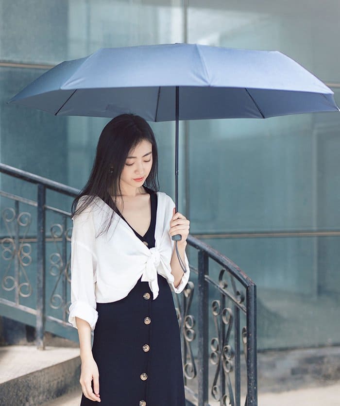 В качестве базового материала для пошива купола было решено выбрать тайваньскую ткань Fonewr, отличающуюся повышенной водонепроницаемостью и целым рядом других полезных эксплуатационных свойств. Волокна из полиэстера наделяют зонтик устойчивостью к ультрафиолетовым излучениям. В итоге аксессуар получил поверхность, способную эффективно отталкивать дождевые капли, пыль и грязь, а также создавать надежный барьер для солнечных прямых лучей. Чтобы полностью убрать воду с зонта, достаточно просто его встряхнуть.