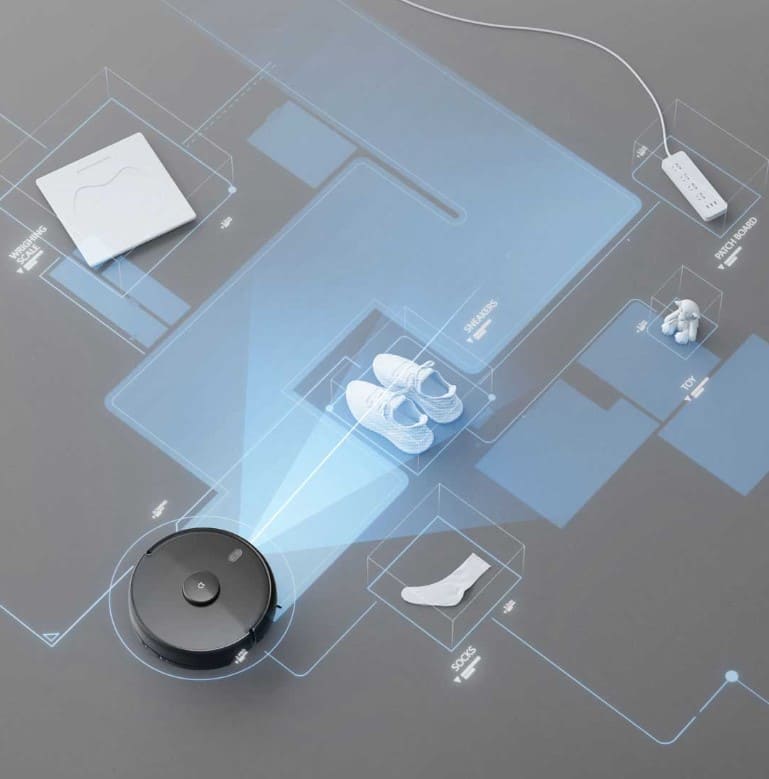 Благодаря использованию трехмерной навигации, пылесос без труда распознает комнаты и окружающую обстановку. Точное позиционирование различных объектов позволяет эффективно проводить уборку без столкновений и заторов.