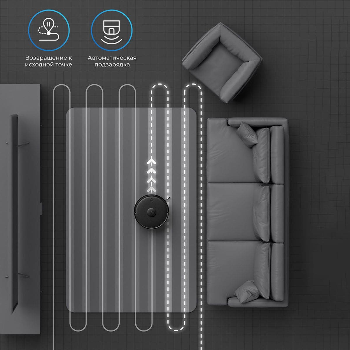 Робот оснащен процессором CPU и двухъядерным блоком NPU, которые позволяют строить оптимальный маршрут и создавать виртуальные карты помещений в которых будет проводиться уборка.