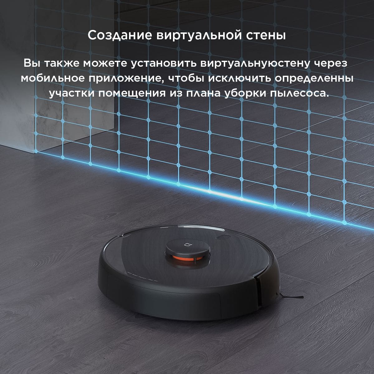 Вы также можете установить виртуальную стену через мобильное приложение, чтобы исключить определенные участки помещения из плана уборки пылесоса.